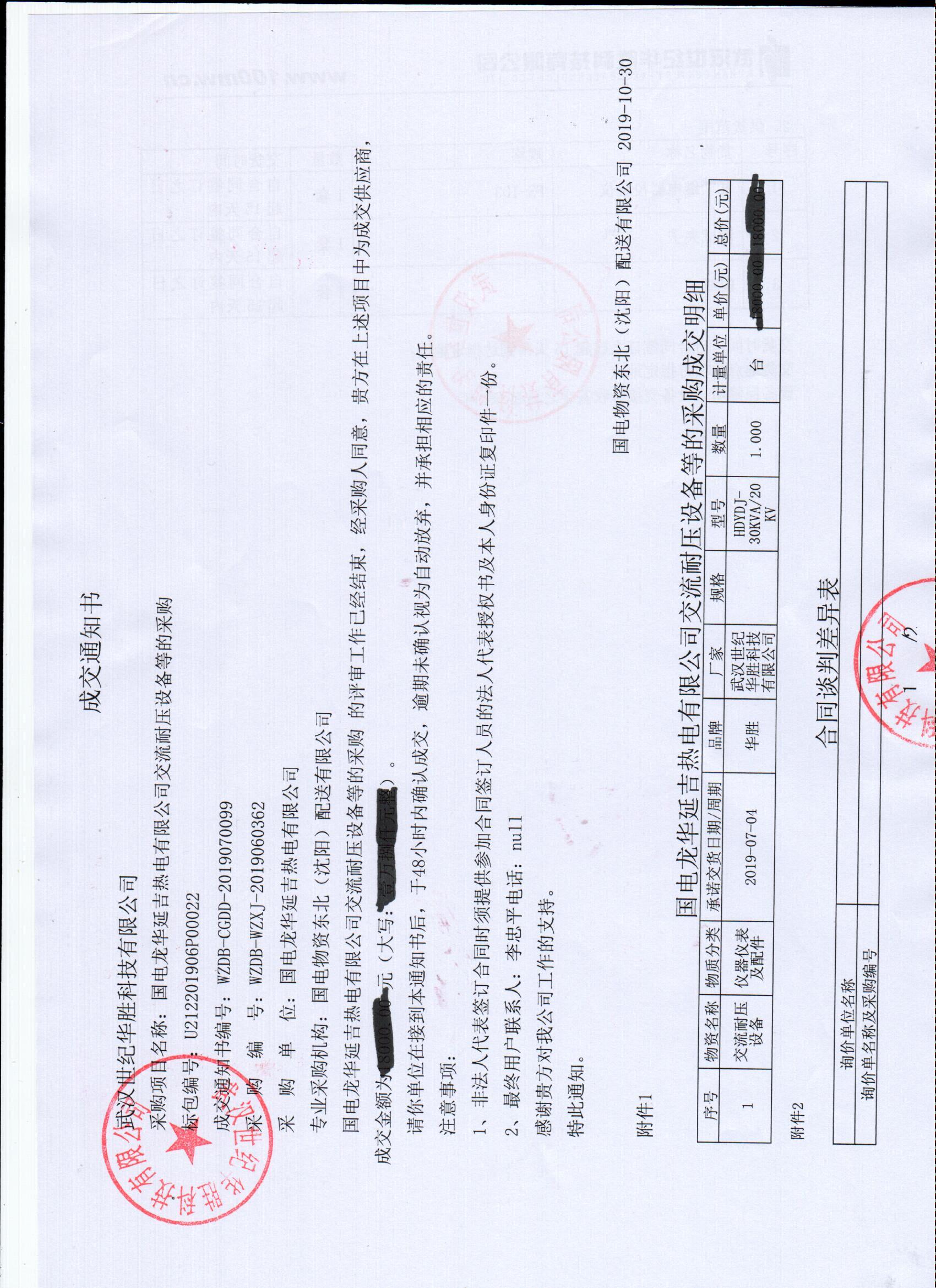 國(guó)電龍華延吉熱電有限公司交流耐壓設(shè)備等的采購(gòu)