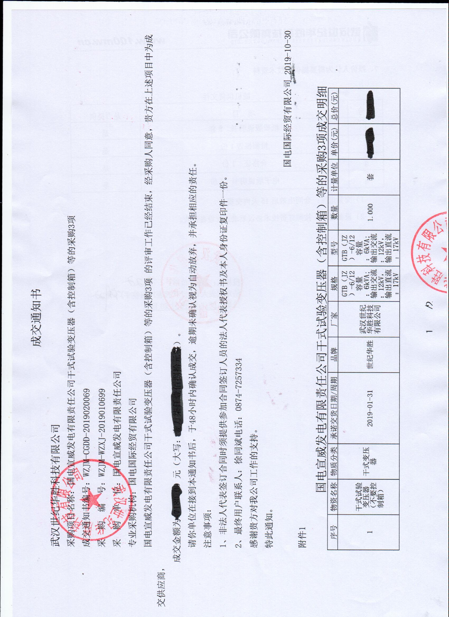 國電宣威發(fā)電有限責(zé)任公司干式試驗(yàn)變壓器(含控制箱)等的采購3項(xiàng)