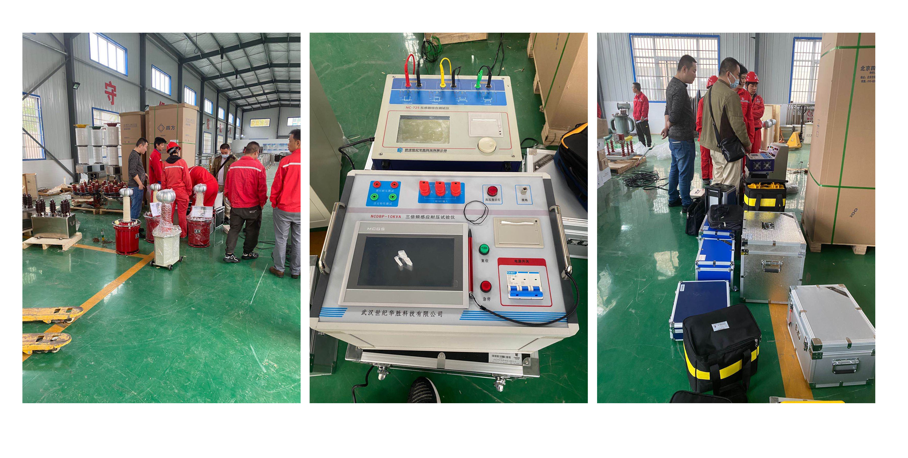 此次客戶采購的儀器有162KVA-108KV的串聯(lián)諧振,充氣式試驗變壓器、10A直流電阻測試儀、變比測試儀、互感器綜合測試儀、介質(zhì)損耗測試儀、三倍頻感應(yīng)耐壓裝置、蓄電池充放電儀等。當(dāng)中標通知下來之后,我司商務(wù)人員與對方溝通了交貨期,確定好之后抓緊安排生產(chǎn)部人員下發(fā)生產(chǎn)計劃,經(jīng)過近一個月的時間,我司產(chǎn)品如期保質(zhì)保量的交付給客戶使用。