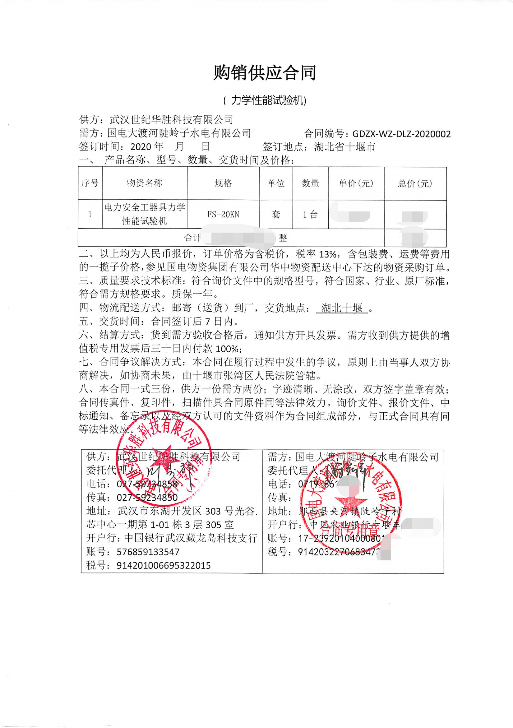 國電大渡河陡嶺子水電有限公司電力安全工器具力學(xué)性能試驗(yàn)機(jī)的采購