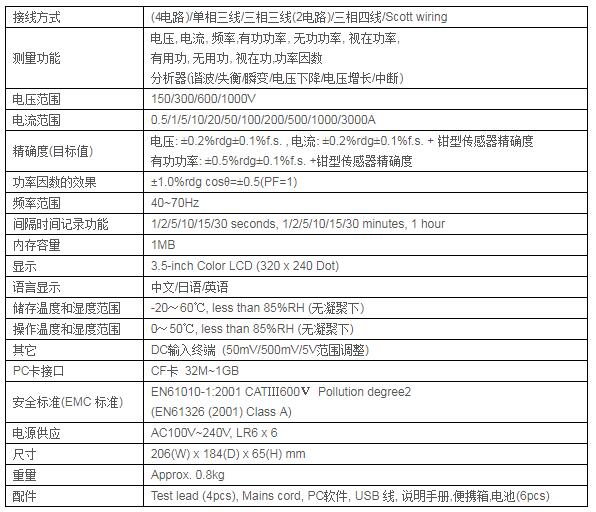 共立6310電能質(zhì)量分析儀技術(shù)參數(shù)
