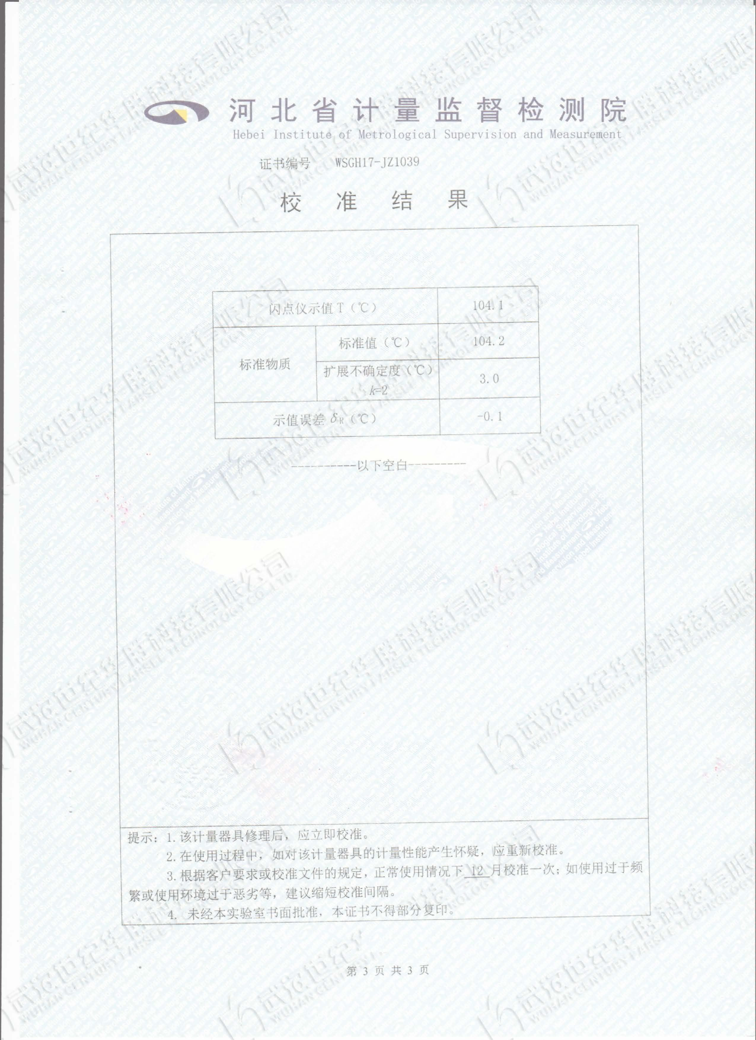 準(zhǔn)確度:≤104℃±1℃,≥104℃±2℃